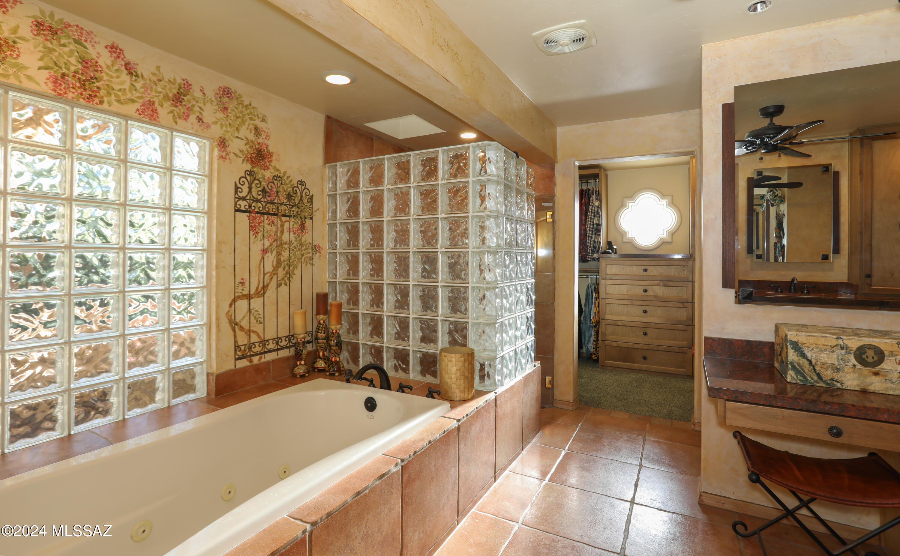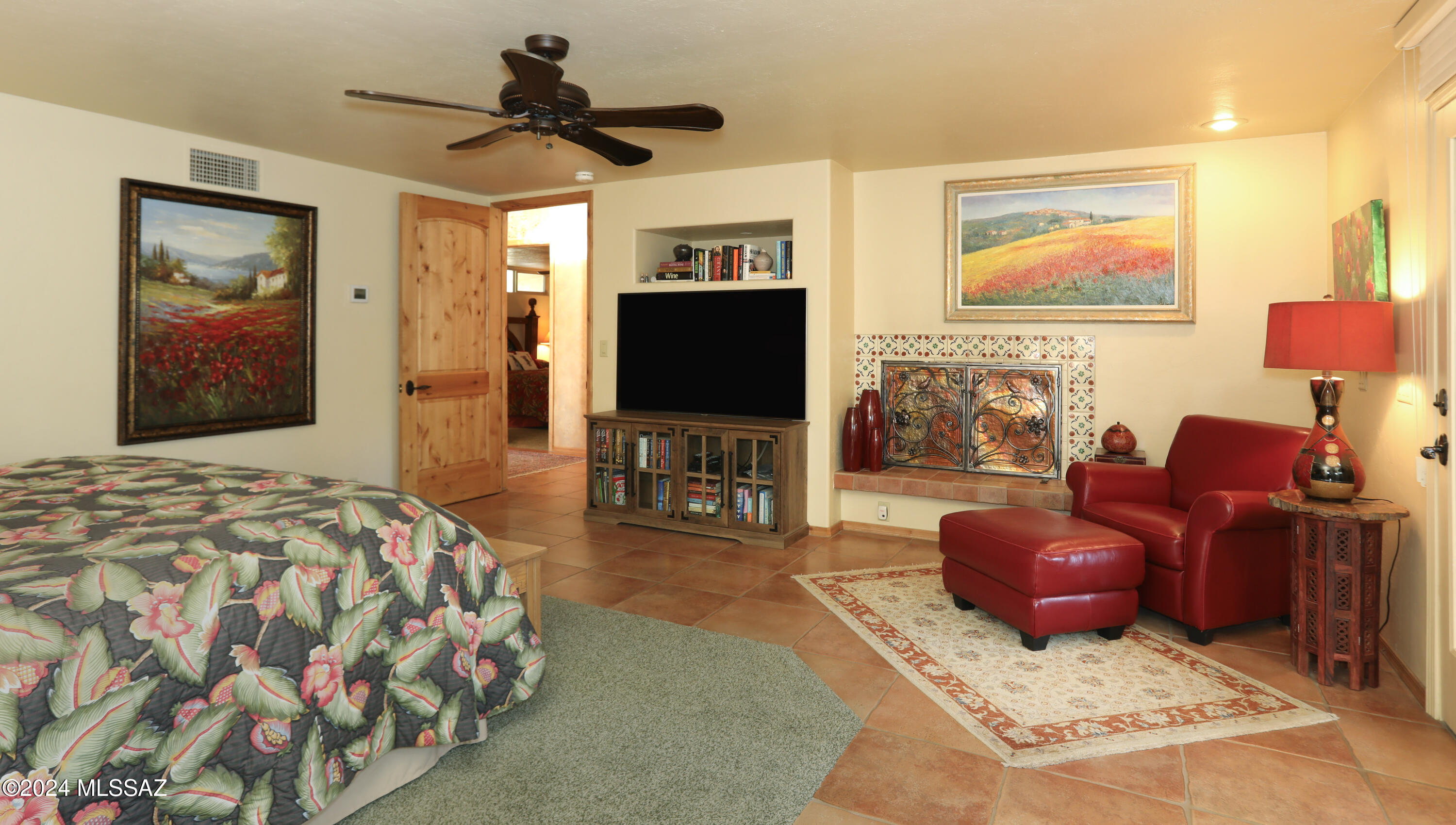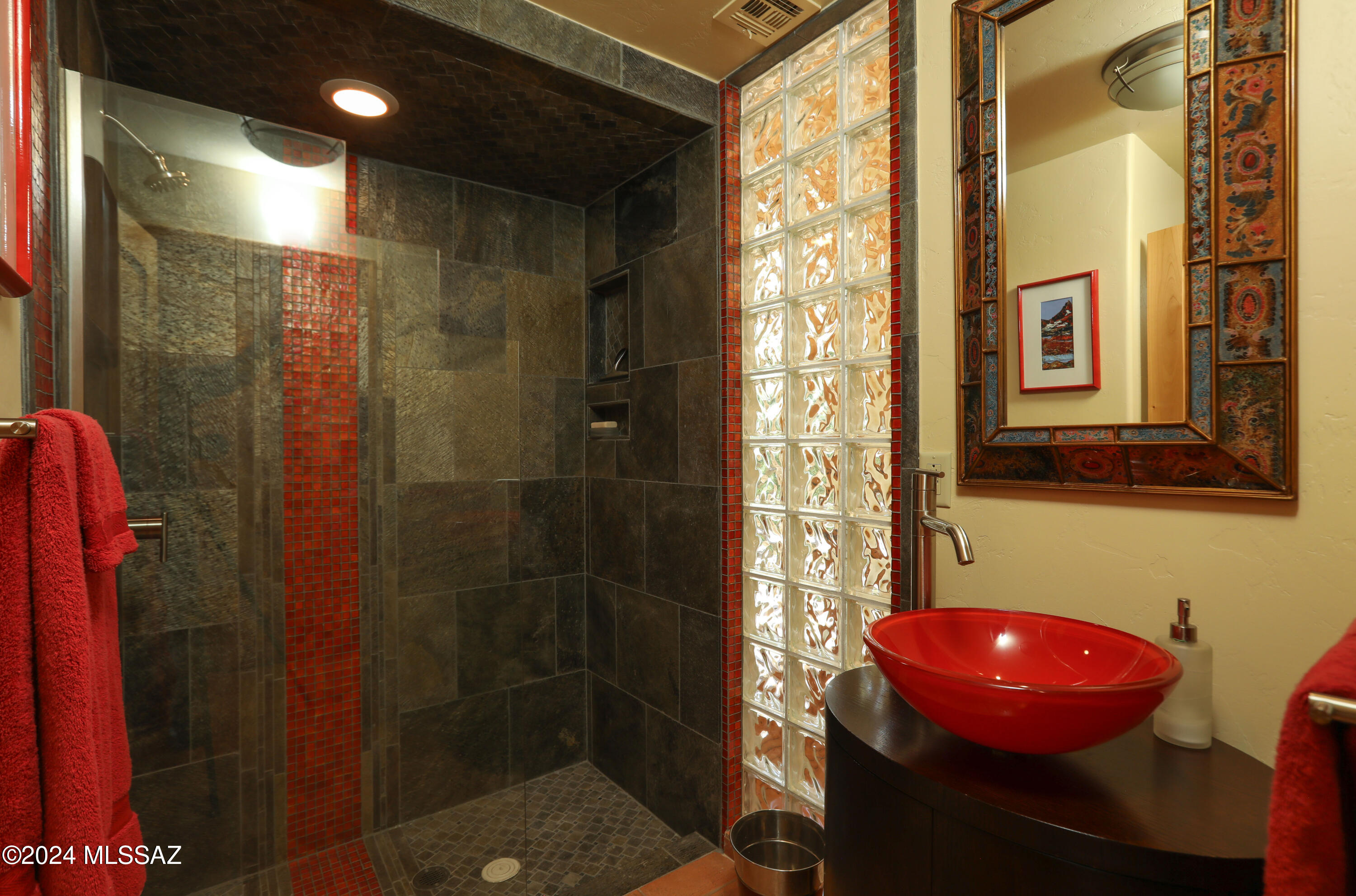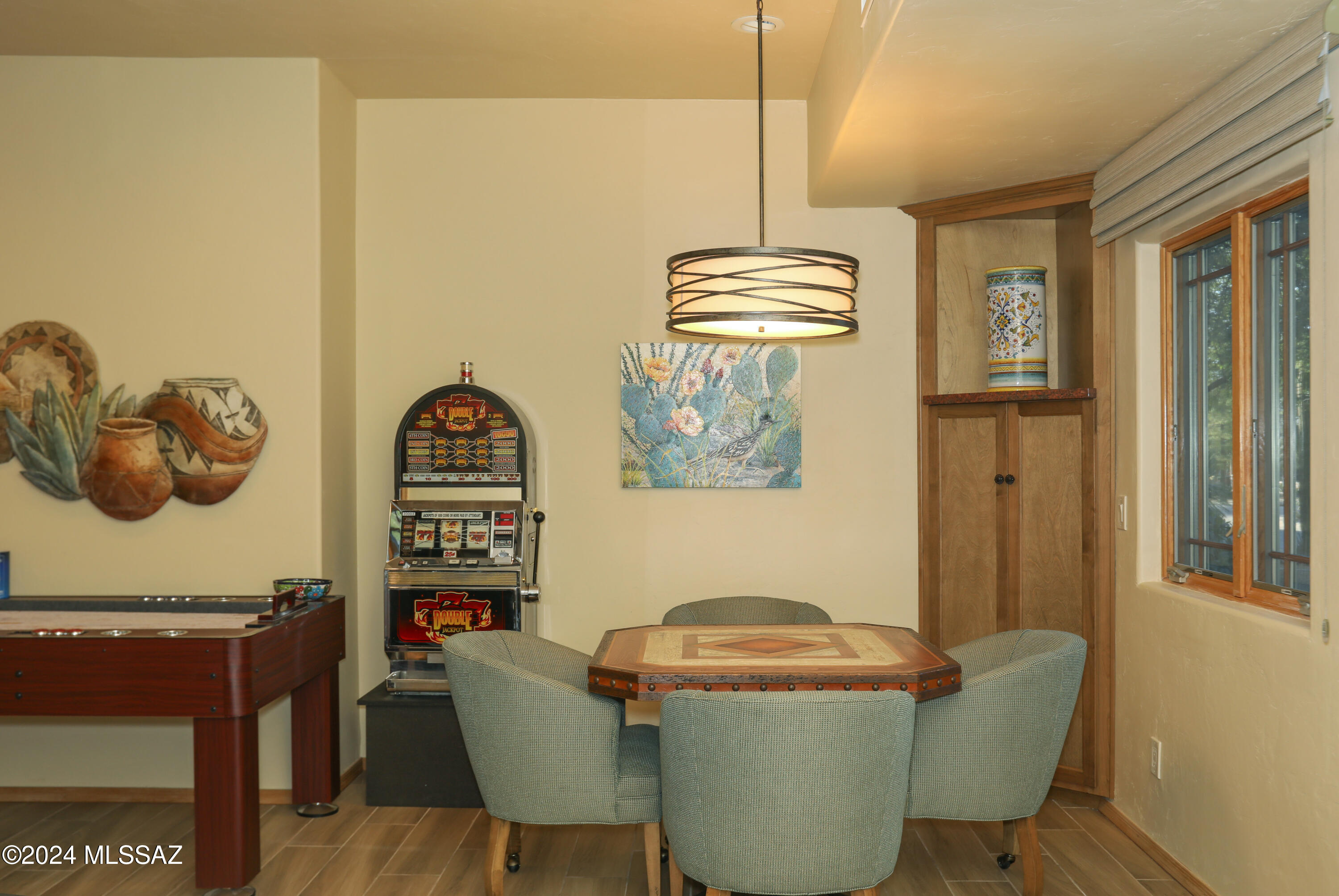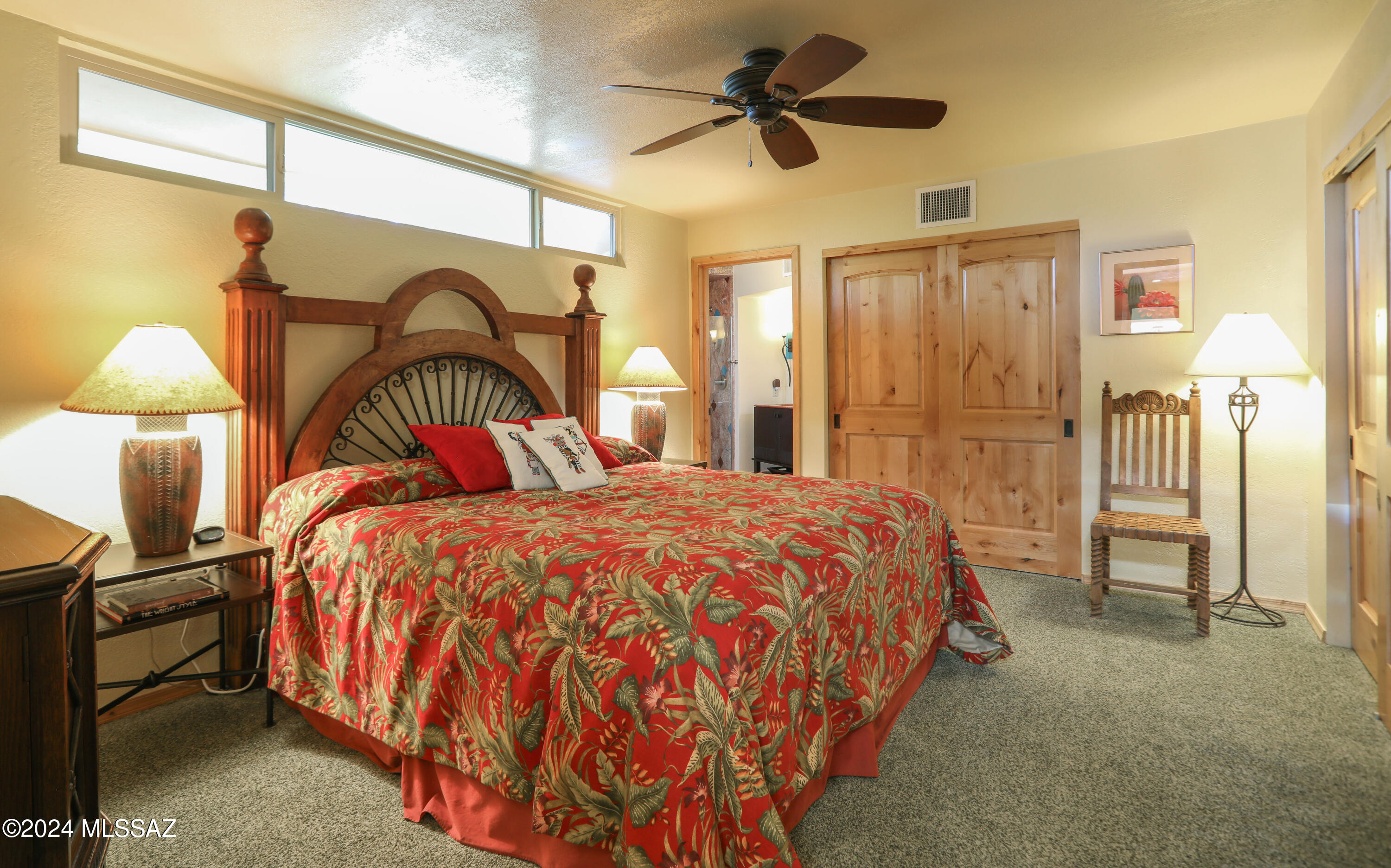Nestled within the prestigious Oro Valley Country Club, this stunning 3-bedroom, 3.5-bath custom residence perfectly blends sophistication and comfort. Designed with the discerning homeowner in mind, the grand foyer adorned with striking ledger rock accents, sets the tone for the rest of the home. The spacious Great Room boasts a wood-beamed ceiling, a conversation area with gas fireplace, makes it the ideal space for entertaining guests in style. The Chef's dream kitchen features custom knotty alder cabinetry, granite countertops, a farm sink, and a suite of premium stainless-steel appliances including a warming drawer, expansive island and a coffee bar. The piece de resistance is the climate-controlled, 540 bottled wine room--a perfect spot to store your finest vintages. con't. Custom built-in desk and cabinets meets your home office needs. The versatile media/game room is a showstopper, featuring a wet walk-around bar, a 10-foot projection TV, and surround sound. Whether it's movie nights or lively gatherings, this space is sure to impress. Step outside to a beautifully landscaped backyard that adjoins the OVCC Hole #12 fairway. The outdoor kitchen equipped with gas grill, refrigerator, and sink makes al fresco dining a breeze. Unwind in the private hot tub while soaking in the captivating views of Pusch Ridge. The primary suite also includes a secluded patio with a fireplace, dual ceiling fans, and skylights for year-round enjoyment. Escape to the luxurious primary suite, complete with French doors that open to breathtaking backyard and Catalina Mountain views. Enjoy the retreat with gas fireplace, dual custom closets with organizers, and a spa-inspired bathroom with a jetted tub, split vanities, and intricate custom tile work. Each Guest bedroom offers unique comforts. One features a private ensuite with a porcelain copper vanity, while the other boasts a private patio and a nearby bathroom with a waterfall tile shower and glass vessel sink. A remodeled powder room with a sleek modern vessel. Additional amenities include an oversized 2-car garage with a mini-split system and separate garage door for golf cart area. A single car garage with workshop & sink. With 3 HVAC systems and 9 skylights, this home is as energy efficient as it is luxurious. This exquisite property combines luxury, convenience, and thoughtful design, creating the ultimate living experience.