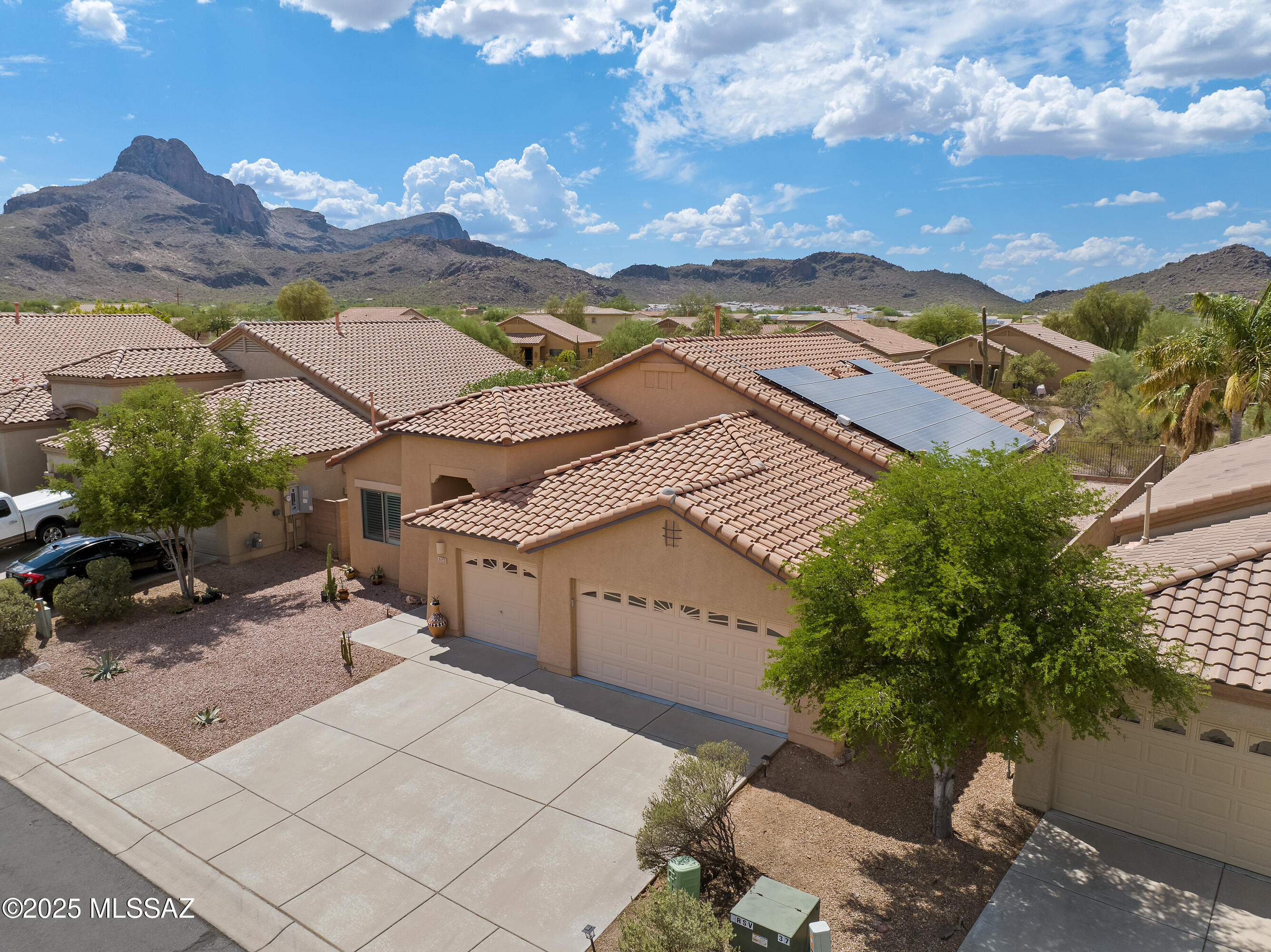 Impeccably maintained 3BD/2BA home in Continental Reserve with a functional split floor plan and 3-car garage. The north-facing backyard offers mountain and desert views with privacy to relax or play. Freshly painted interior features formal living and dining plus a casual kitchen nook. The spacious kitchen includes stainless appliances, gas range, Corian counters, a breakfast bar, island, reverse osmosis, walk-in pantry, ample cabinetry and built-in desk. Primary suite offers dual vanities, soaking tub and walk-in shower. New plantation shutters throughout. Leased solar helps reduce utility costs. Close to Rattlesnake Ridge School, I-10, shopping, dining and hiking. Move-in ready and ideal for everyday living.